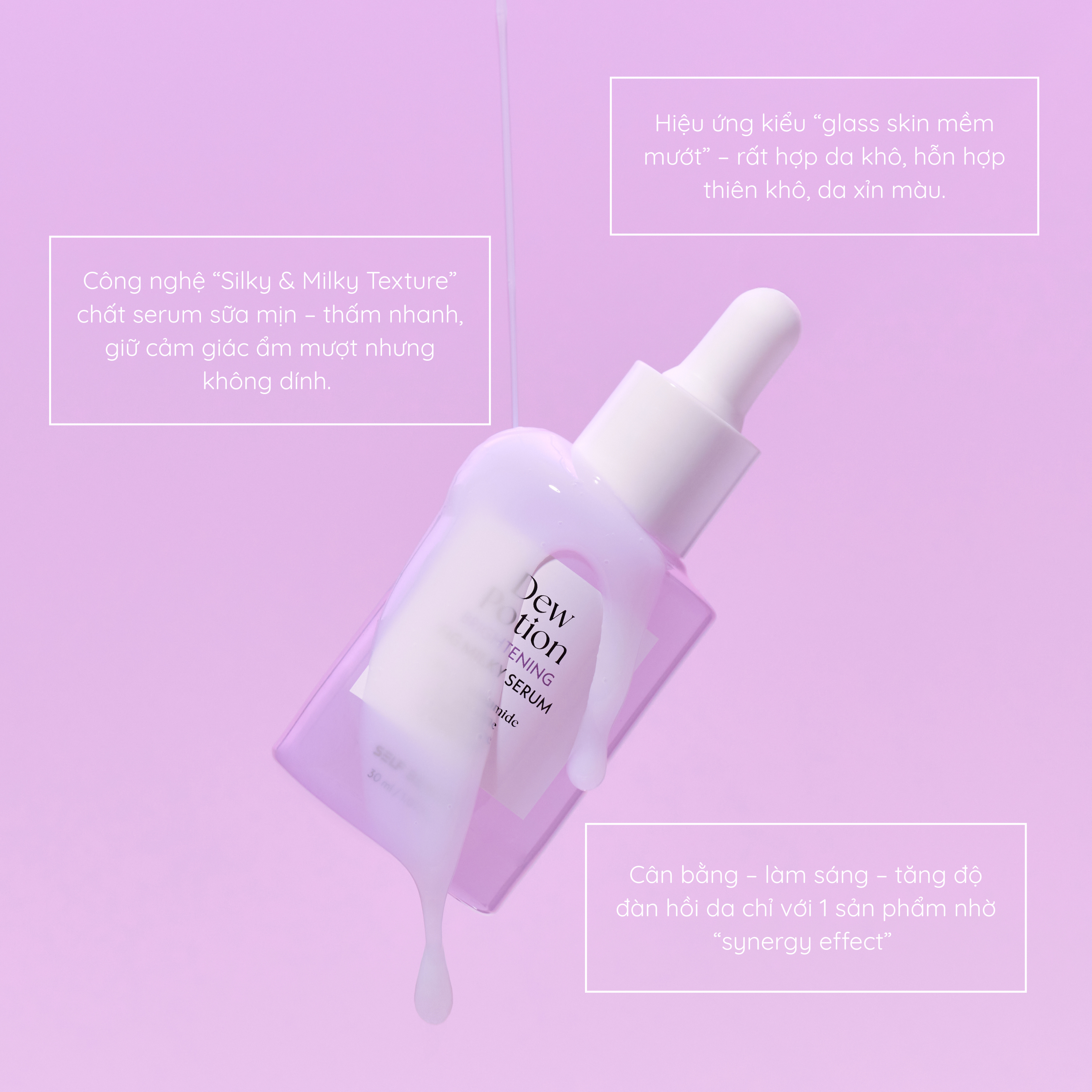 Nhờ kết cấu này, serum phù hợp với da nhạy cảm, da dễ kích ứng và da đang cầm dưỡng sáng nhưng vẫn ưu tiên da khỏe