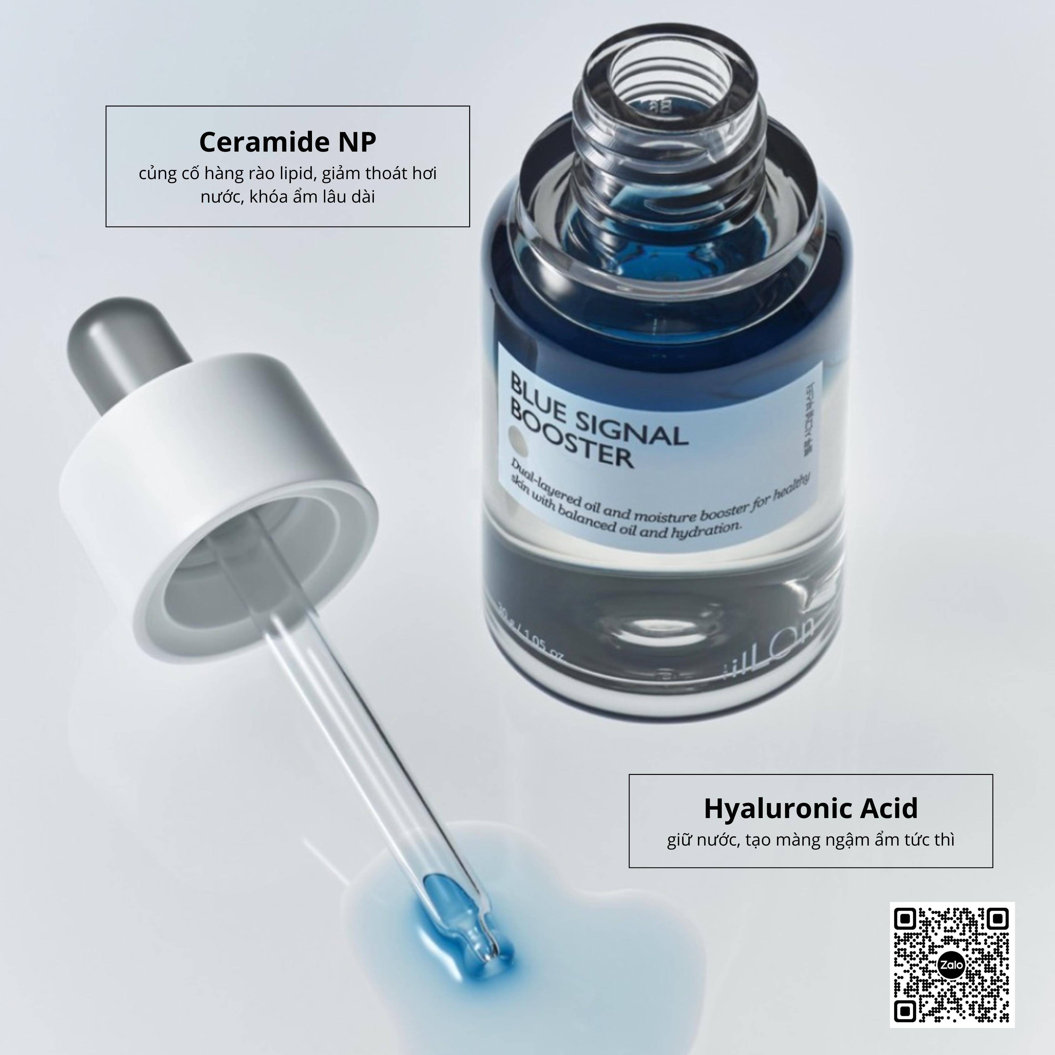 Tinh chất Booster cho da khô - The iLLON Blue Signal Booster, với bản thành phần chuyên biệt sản phẩm giúp tăng cường độ ẩm, ngăn ngừa mất nước và mang lại sức khỏe ổn định cho làn da.