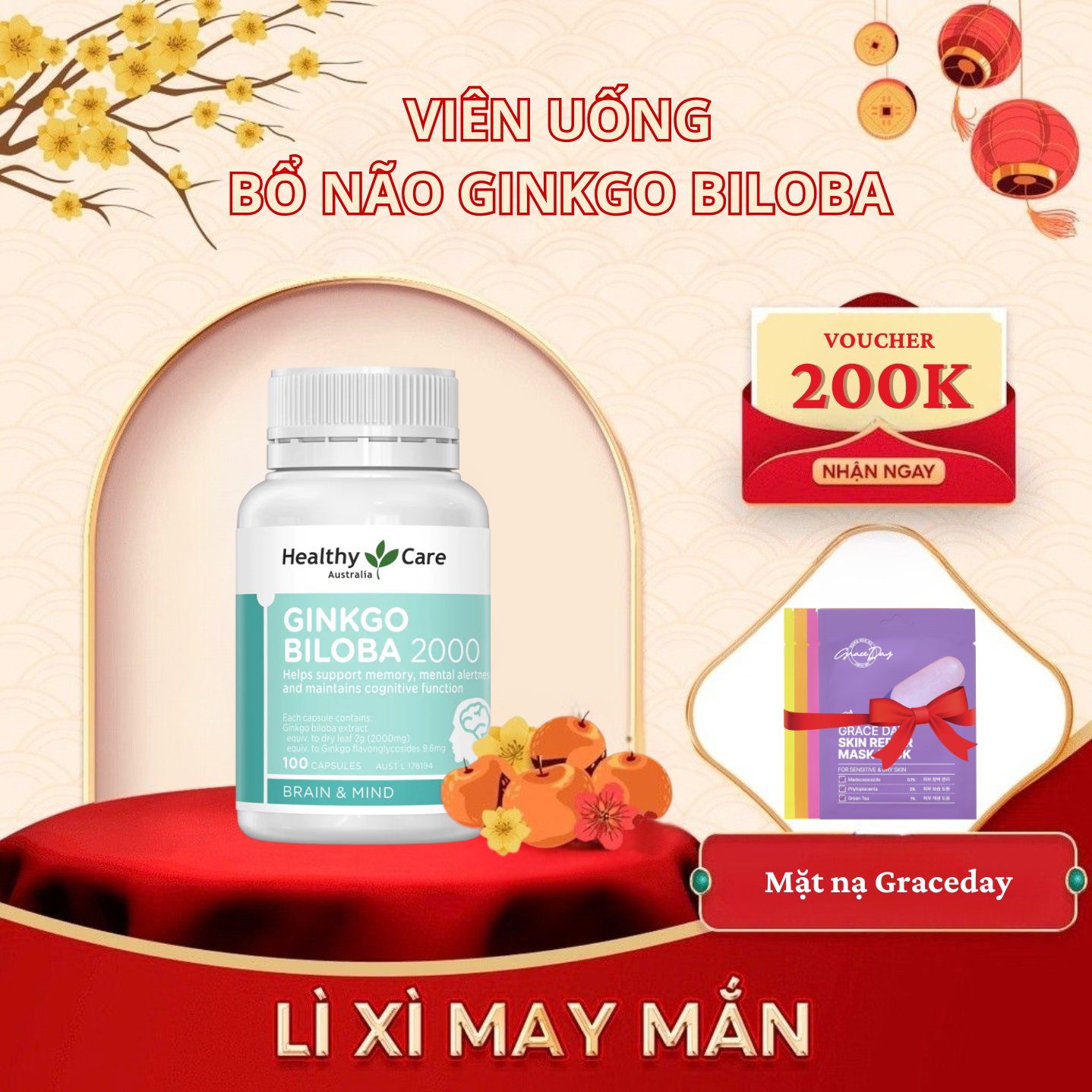 Viên Uống Bổ Não Ginkgo Biloba 2000 100 Viên Healthycare